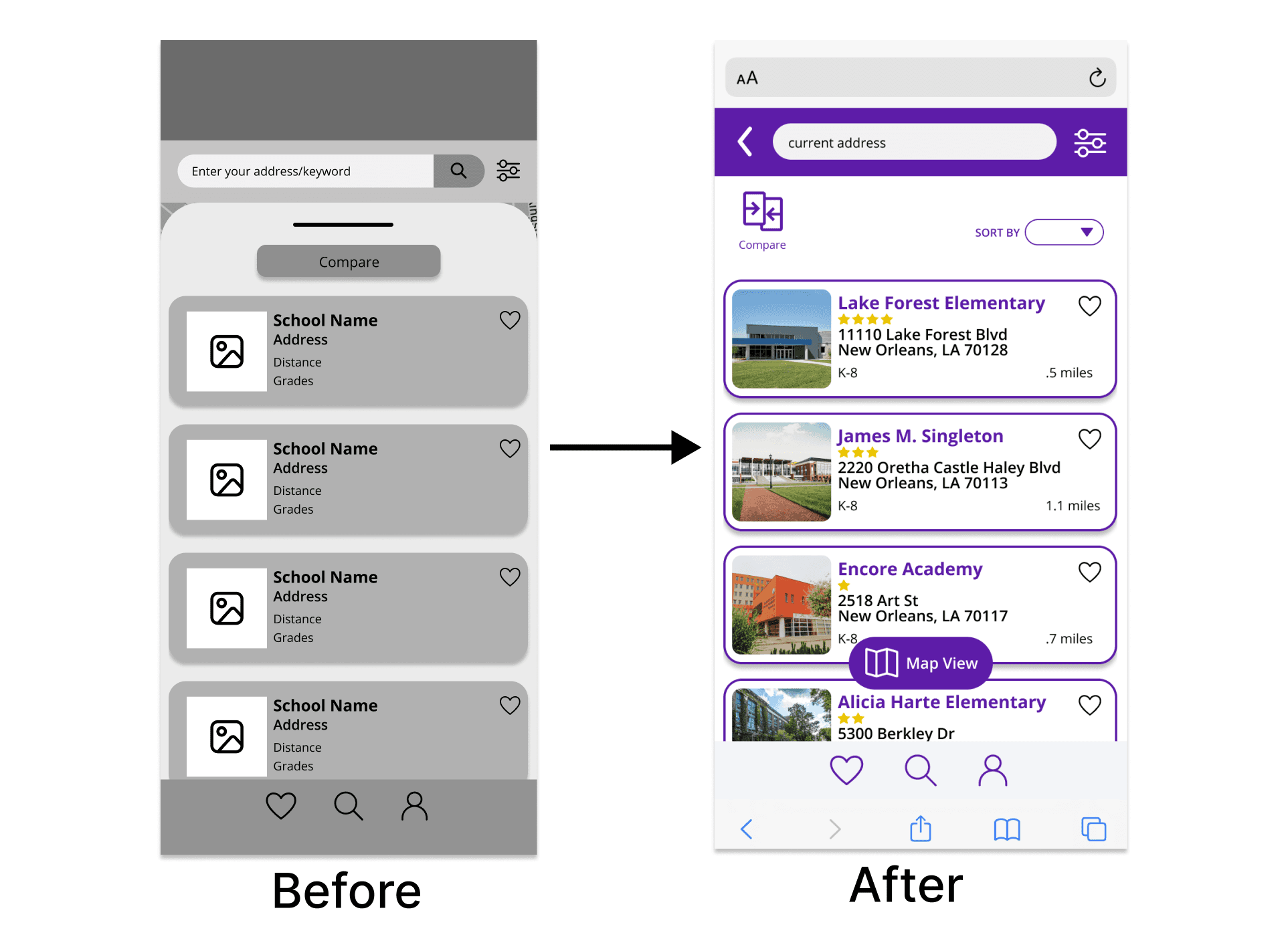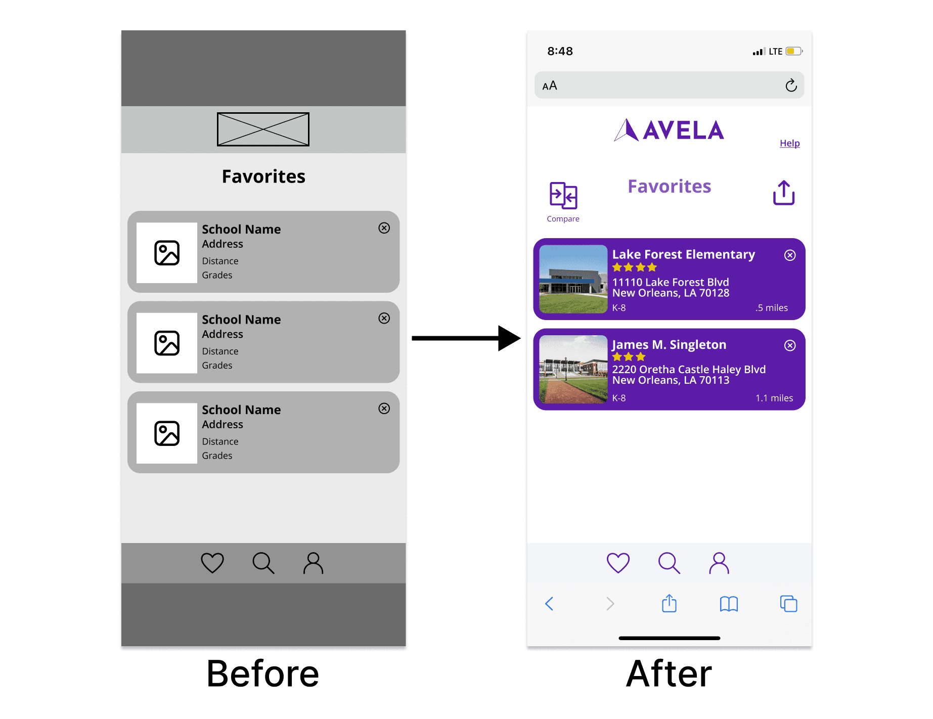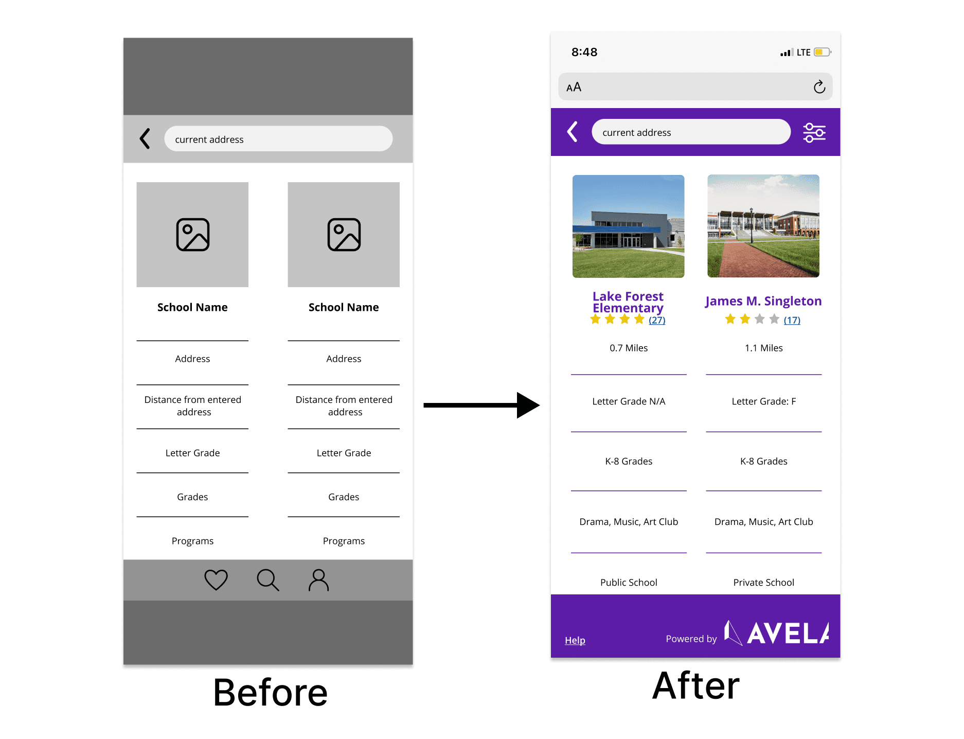 Avela’s mission is to allocate resources and match individuals to opportunities. With a focus on education, they want to empower school districts to offer parents a choice in finding the right fit for their children. Our team of 4 UX Designers created features to enhance the user experience on the school finder service, based on actual research.